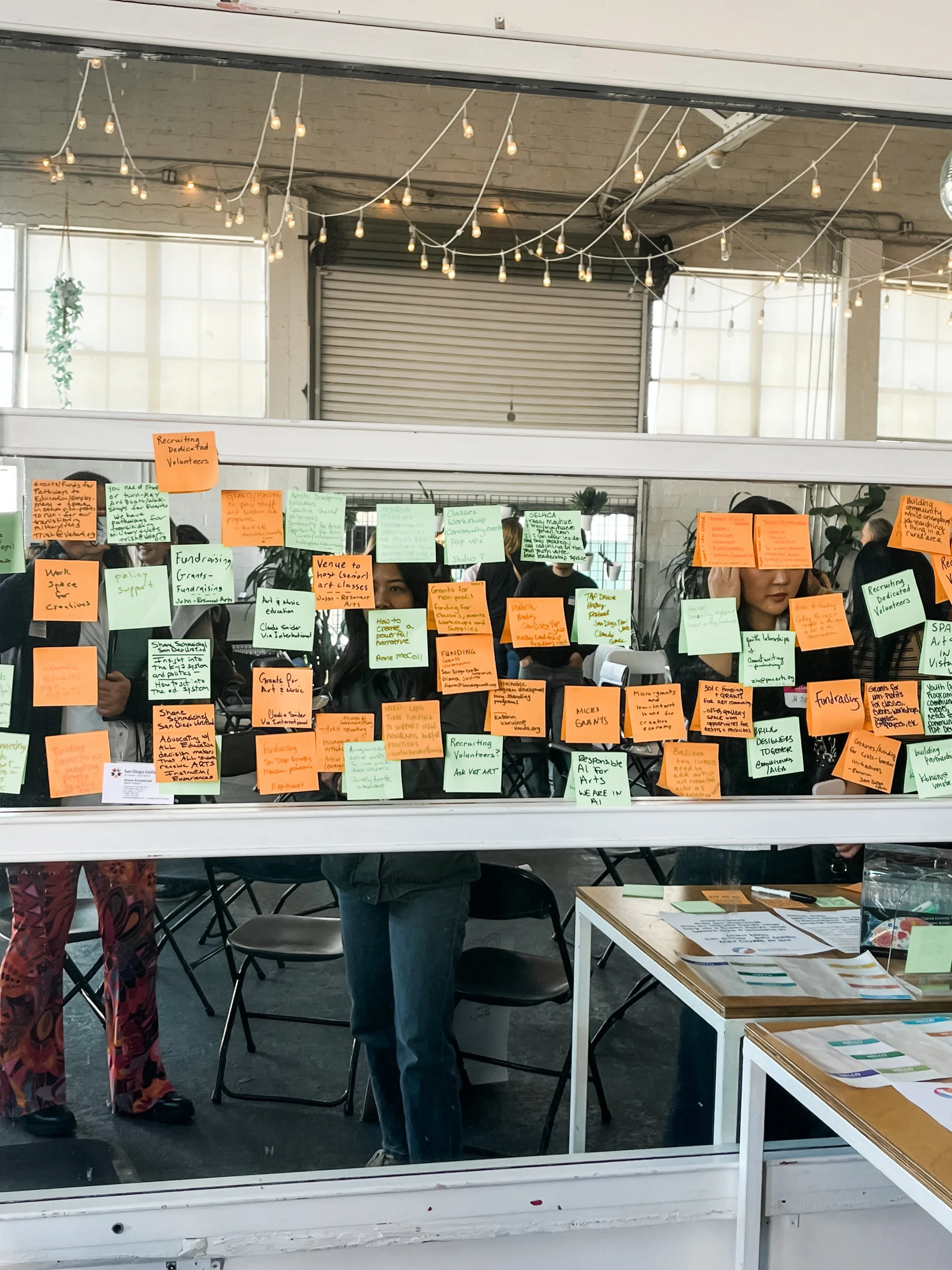 A reminder that good facilitation doesn’t need bells and whistles—just a smart structure and trust in the room. Connections were also built the analog way. Questions went up on orange stickies. Offers of help landed on green ones. You could literally see curiosity and generosity taking shape on the wall.
