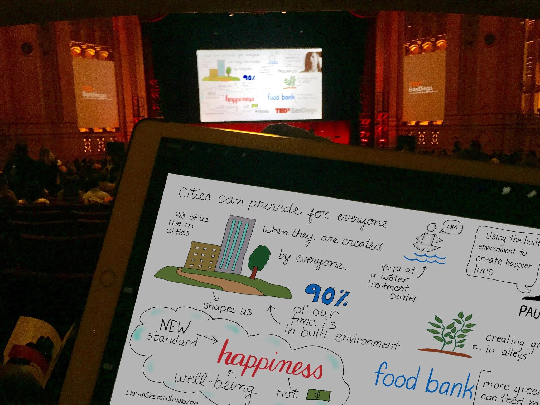 LiquidSketch has creatied digital sketchnotes for TEDxSanDiego for numerous events of the years. The sketchnote artist can sit quietly in the audience and create sketchnotes so the focus can be on the speakers and the ideas they are sharing.